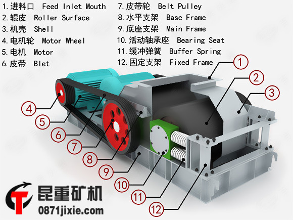 輥式破碎機也叫對輥破碎機、雙輥破碎機,主要由輥輪、機架部分、壓緊和調節裝置以及傳動裝置等部分組成。輥式破碎機是利用兩臺電機帶動兩副輥軸對物料進行擠壓、研磨,適用于抗壓強度小于160兆帕的各種物料的中碎、細碎作業。